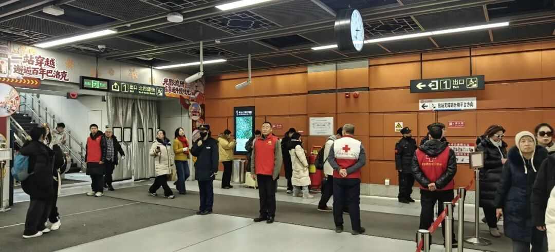 市红十字志愿者服务支队聚焦地铁出行服务,在中华巴洛克地铁站开展了为期10天的专项志愿服务活动。支队统筹调配334名志愿者,累计服务时长5032小时,为返乡及游玩游客提供贴心保障。志愿者们身着红马甲,在车站出入口、闸机、扶梯、站台等关键区域定岗值守,不仅提供问询指引、协助购票等基础服务,还搭建便民服务台,推出免费热水、手机充电、失物招领、医疗保障等多项便民举措,累计为乘客提供一次性水杯5000余个。针对特殊群体,志愿者们耐心协助坐轮椅老人、残疾人士乘坐人工升降平台30次,全程陪护暖心帮扶;面对突发状况,高效处置各类突发事件3件,全力维护车站出行秩序,成为地铁里一道温暖的风景线。