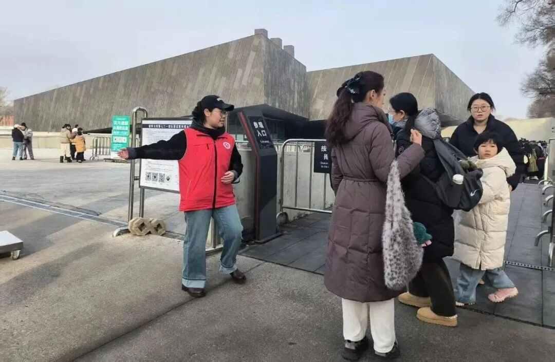 市红十字四叶草志愿服务队则扎根文旅服务一线,于大年初五、初六坚守侵华日军第七三一部队罪证陈列馆入口执勤岗位,在客流高峰中彰显志愿担当。大年初五,因气温骤升冰雪大世界临时关闭,大量游客分流至陈列馆,执勤压力陡增。志愿者们毫无怨言、迎难而上,不顾疲惫疏导人流、解答游客咨询,全力保障场馆入口秩序井然。为缓解执勤压力、保障服务质量,服务队领队第一时间调整执勤安排,初六为各岗位增配两名志愿者,科学调配人力,让志愿服务更高效、更暖心。初六当天大雪纷飞,不少未提前预约的游客慕名而来,志愿者们配合馆方推出的临时预约举措,耐心指引游客操作预约流程、细致讲解参观注意事项,助力游客顺利入馆。其中,一名第三次到访哈尔滨、此前两次均因预约满额未能入馆的游客,在志愿者的帮助下成功现场预约,真切感受冰城的温暖与诚意。
