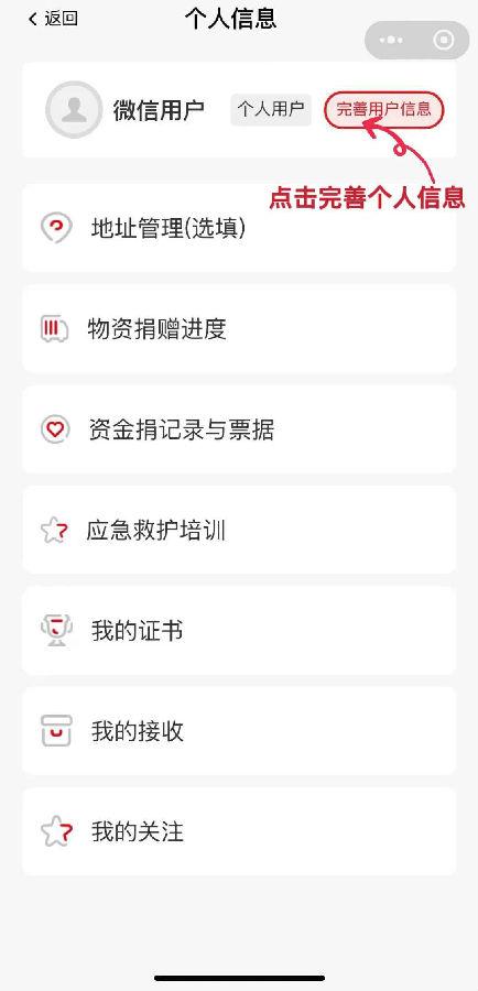 第二步:首次登录“博爱通”用户需“点击授权登录”,点击右上方的“完善用户信息”,填写个人信息后即可捐款。